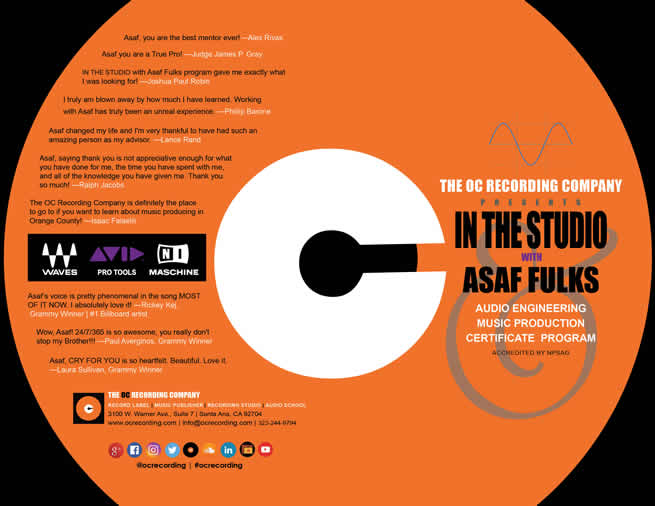 Founded by recording artist, music producer and audio engineer Asaf Fulks, The OC Recording Company is record label, music publisher and an accredited audio engineering and music production school www.ocrecording.com